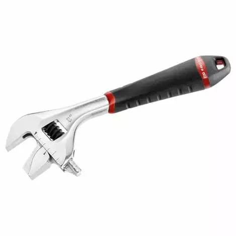 - De l’autre côté, le mors est à denture fine pour les serrages puissants sur tubes et autres pièces nécessitant une bonne accroche et un passage d’un couple élevé.