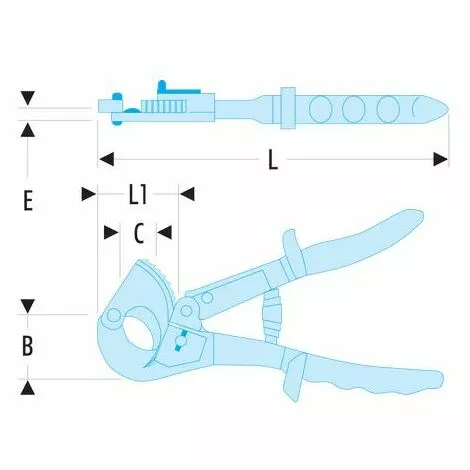 - Système cliquet-lame pour couper des câbles de diamètre important avec un effort minimum.