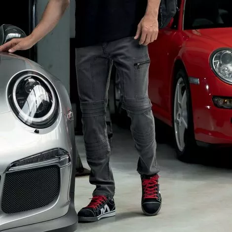 - Un jean de travail gris à l’excellent rapport qualité/prix, équipé d’une poche cuisse zippée pratique.